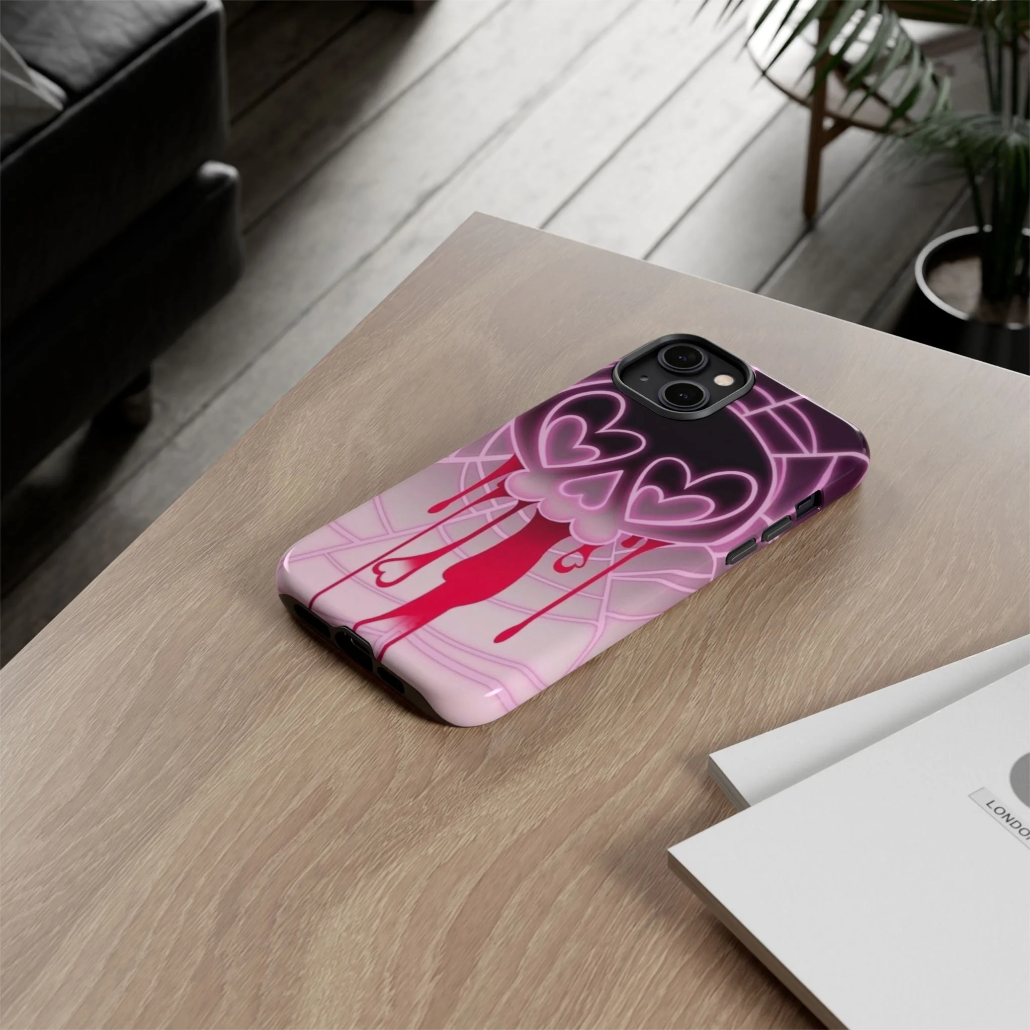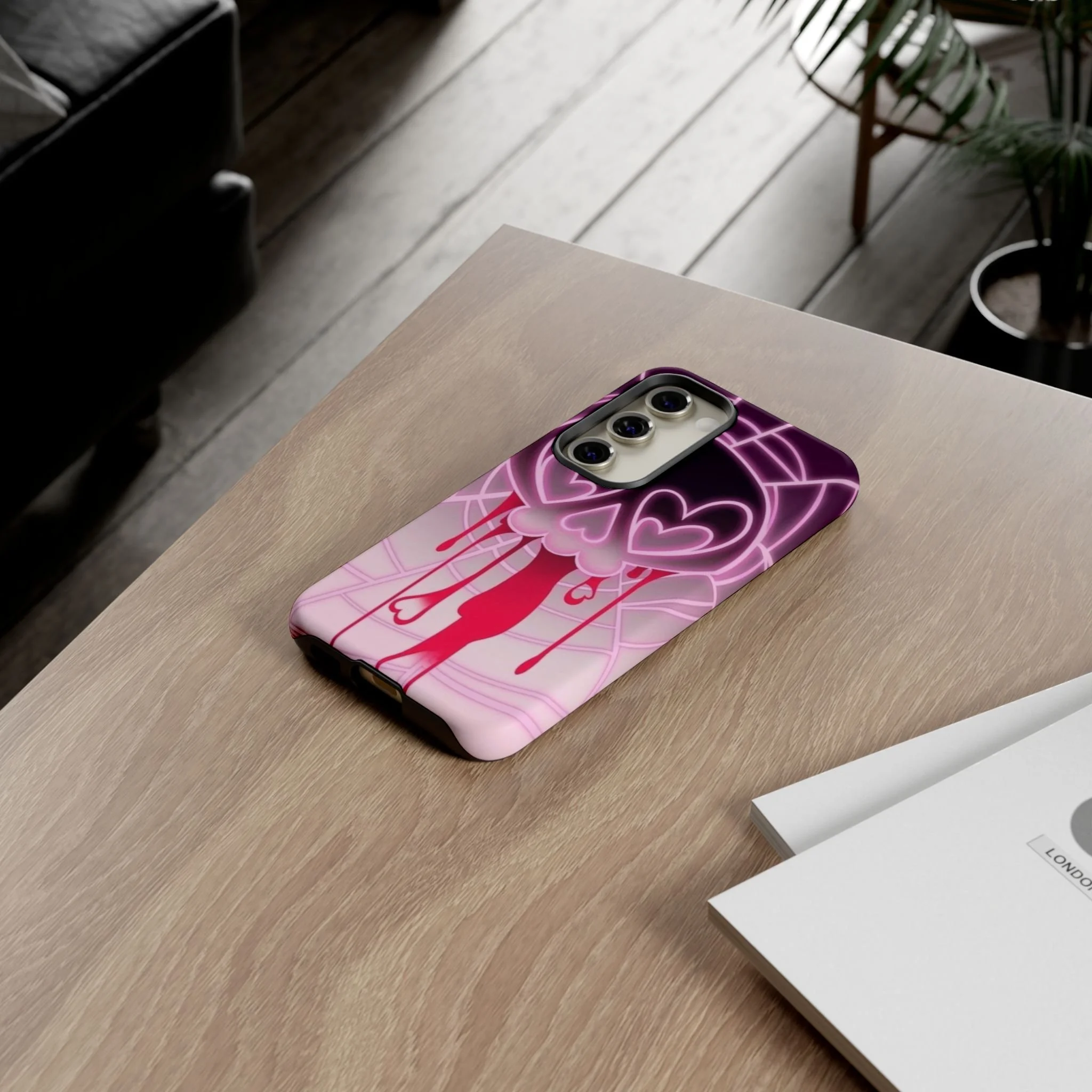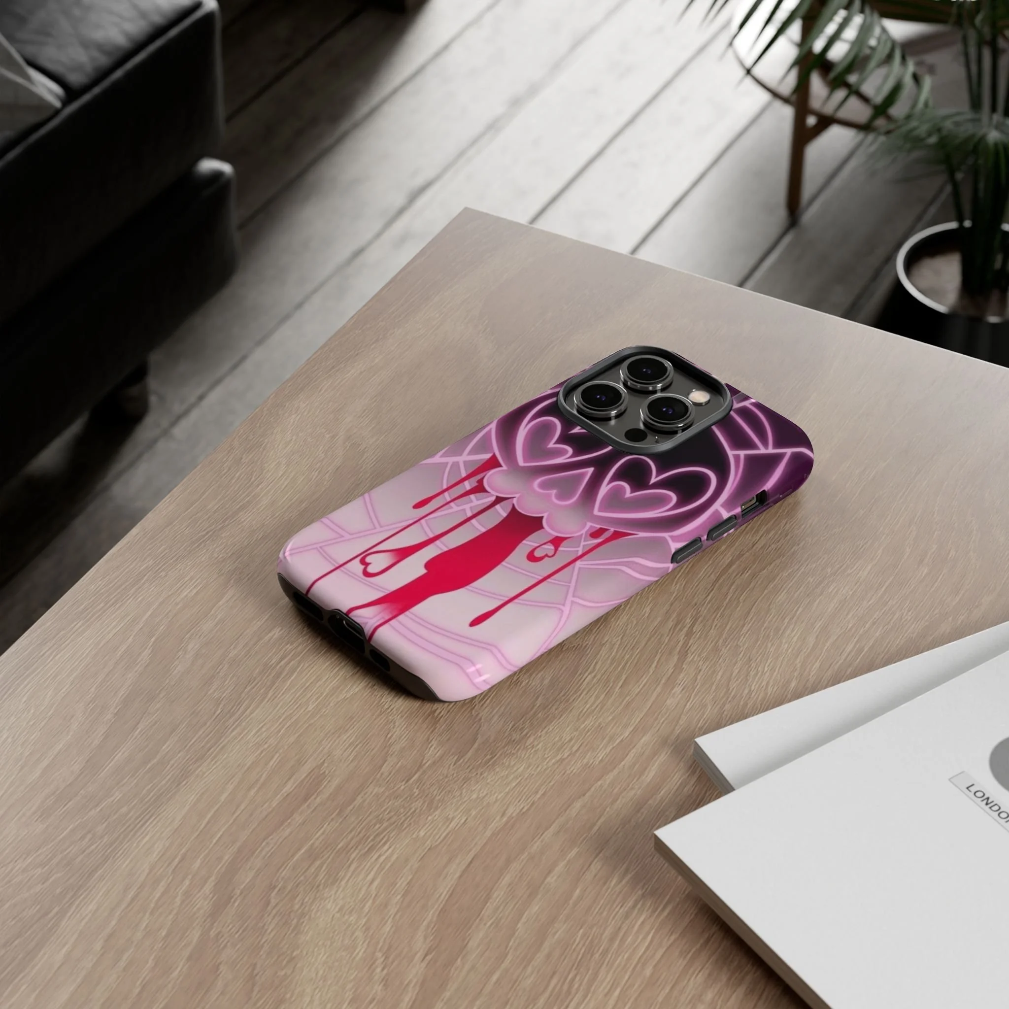 Hazbin Hotel Angel Dust cannon phone case with dual-layer construction, shields your device from drops, while the TPU silicone liner cushions impacts. Bright UV-resistant inks keep a vivid neon image from fading. Slim profile with clear port openings, wireless charging compatible, and made from durable polycarbonate and TPU.