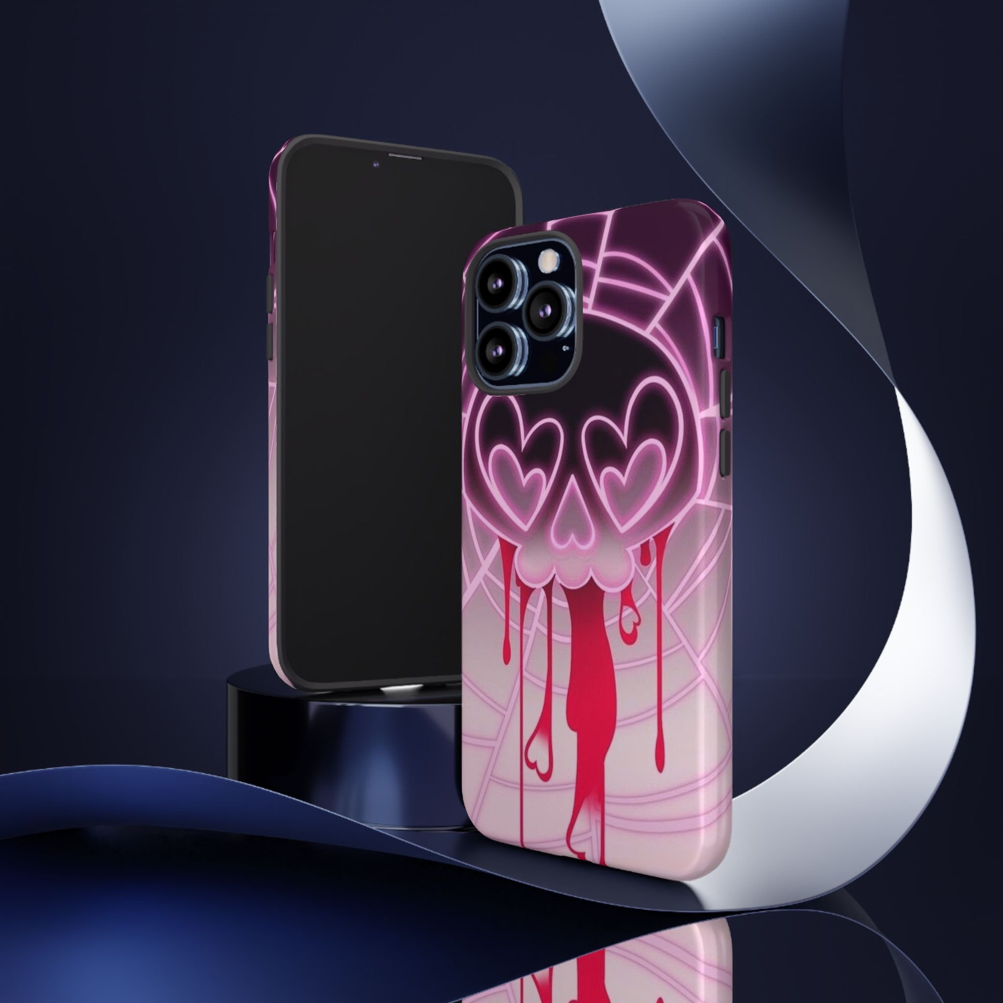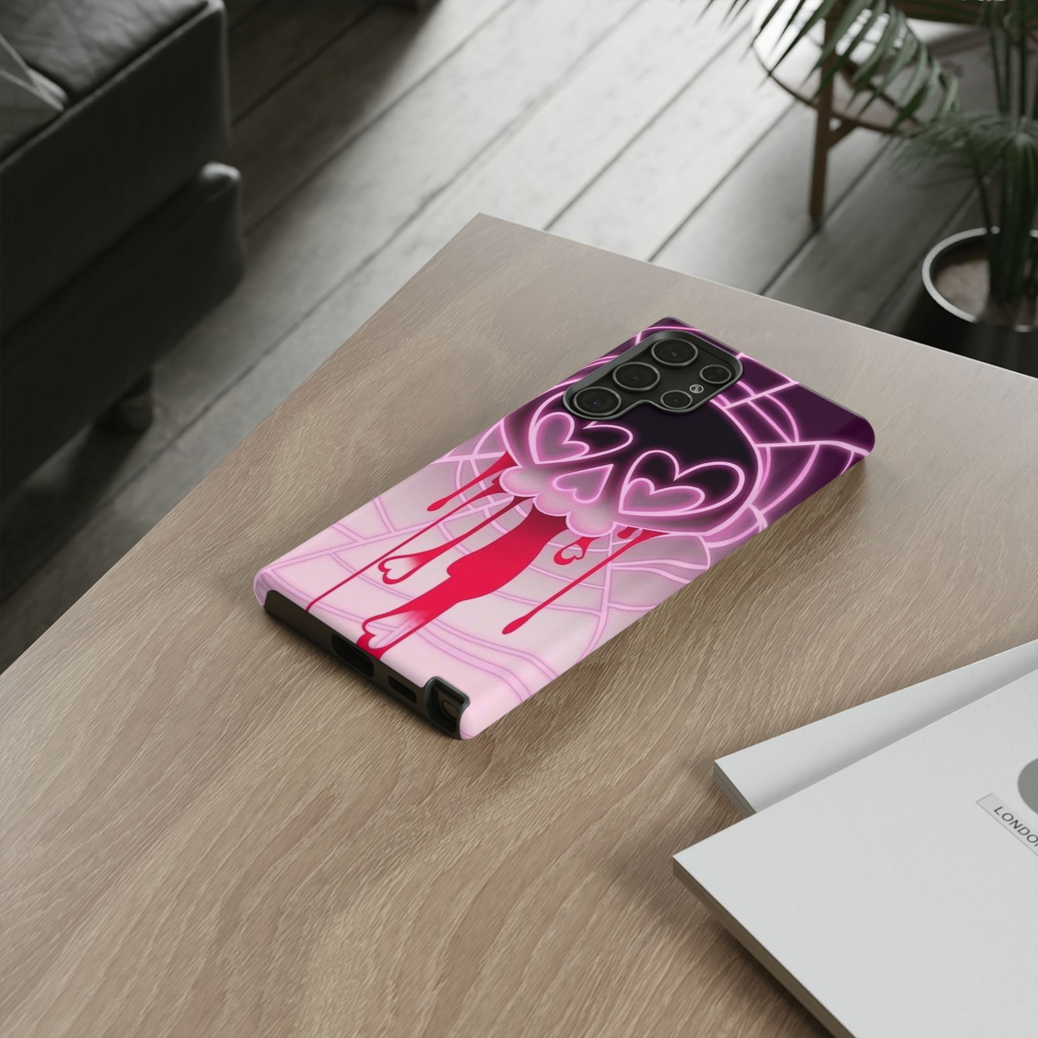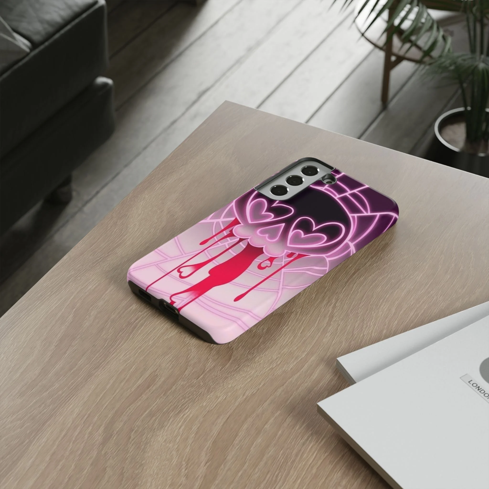 Hazbin Hotel Angel Dust cannon phone case with dual-layer construction, shields your device from drops, while the TPU silicone liner cushions impacts. Bright UV-resistant inks keep a vivid neon image from fading. Slim profile with clear port openings, wireless charging compatible, and made from durable polycarbonate and TPU.